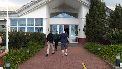 Unser nächster Halt ist das Golfclubhaus (noch höher oben, mit noch mehr heiklen Serpentinenstrassen), wo wir ebenso eine traumhaft tolle Aussicht bekommen, sowie auch die Auswahl zwischen Champagner oder Madeirawein (medium süss/trocken) oder auch was nicht-alkoholisches, ich glaub das war wohl Fanta, nebst leckeren Knabbereien (eingelegte Oliven, Salz-Chips und Salz-Erdnüsse). Und da wurde brav weiter nachgeschenkt. Mei war das „Yummi“.... Der Wein war sehr lecker, aber wer das nicht kennt, bzw. gewohnt ist, dem „schenkt“ das gute Zeugs mächtig „ein“...