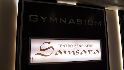 Die Musterung der Möbeloberflächen ist so schön... das wiederholt sich ja im Giardino-Restaurant in Form von Spiegelapplikationen an den Wänden (wo wir unser erstes Mittagessen hatten) und auch als Vorhang-Halterungen im Restaurant Botticelli (dazu später mehr).
