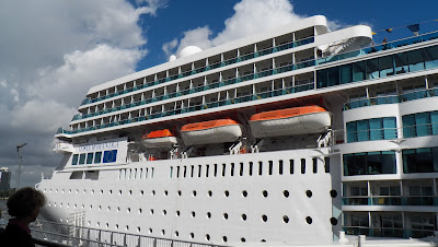 runter und sind mit unserer Nr. 2 kaum 10 min. später dran.Das Boarding sollte gegen 13.00 anfangen, und wir hatten noch Zeit, also nichts wie hoch auf die Terasse, Schiffle gucken und die ersten Fotos machen.
