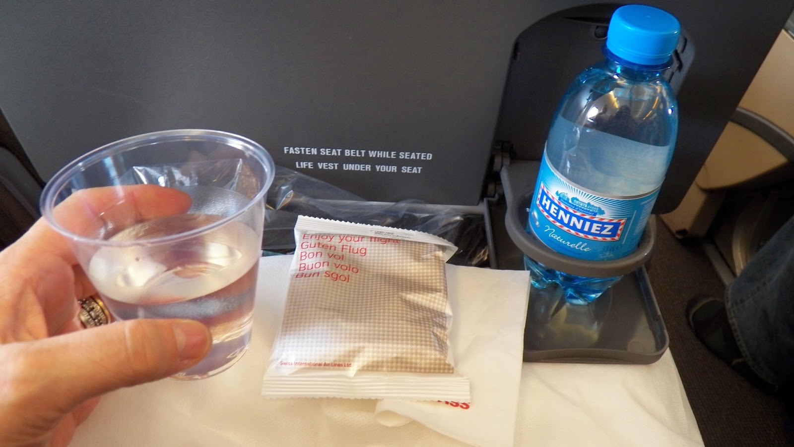 Unsere Buchungsklasse war Economy, wir bekamen 2 Sitze nebeneinander am Fenster, allerdings war die Sitzbreite nicht wirklich für „Erwachsene“ ausgelegt. Schlichtweg: kuschlig und auf einem 12-Stunden-Flug (9‘411 km!) einfach sehr unbequem. Schlafen war schwierig, weil irgendwann ziemlich schnell irgendwas wieder arg angefangen hat weh zu tun und die trockene Kabinenluft zwang mich in grossen Mengen Wasser zu trinken – die Stewardess war wirklich sehr geduldig im steten Nachfüllen meiner Wasserflasche.