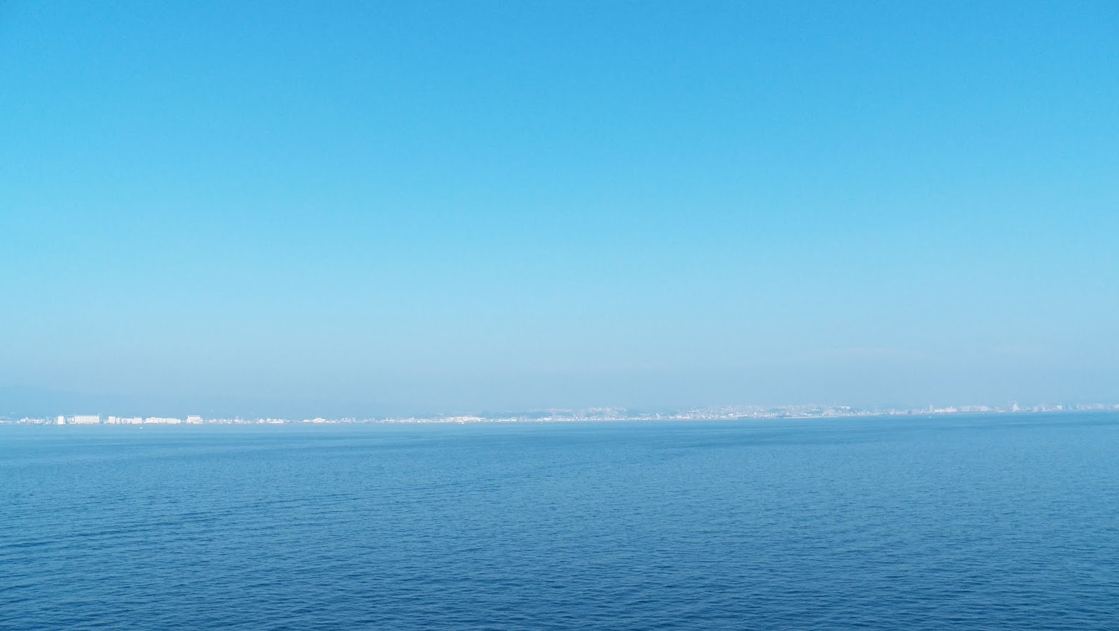 Vom Bus aus gut sichtbar, der Pier ist eine künstlich aufgeschüttete Insel vor Kagoshima.